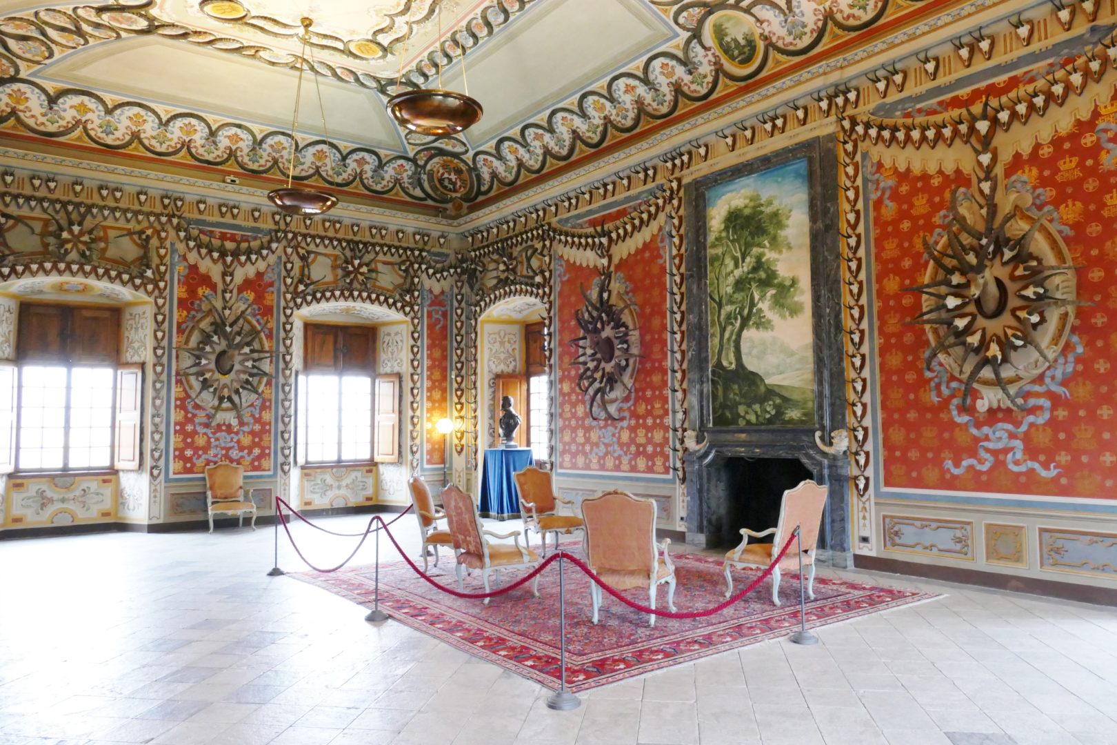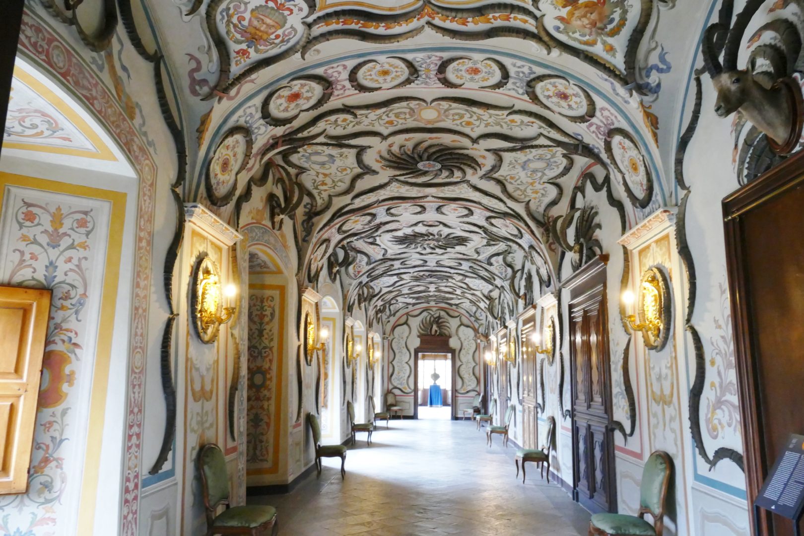Il fiore all’occhiello del Castello è indubbiamente la galleria che conduce al salone d’onore: qui sono esposte ben 669 paia di corna di stambecchi e camosci, in un vortice di decorazioni venatorie che celebrano la passione per la caccia dei sovrani.