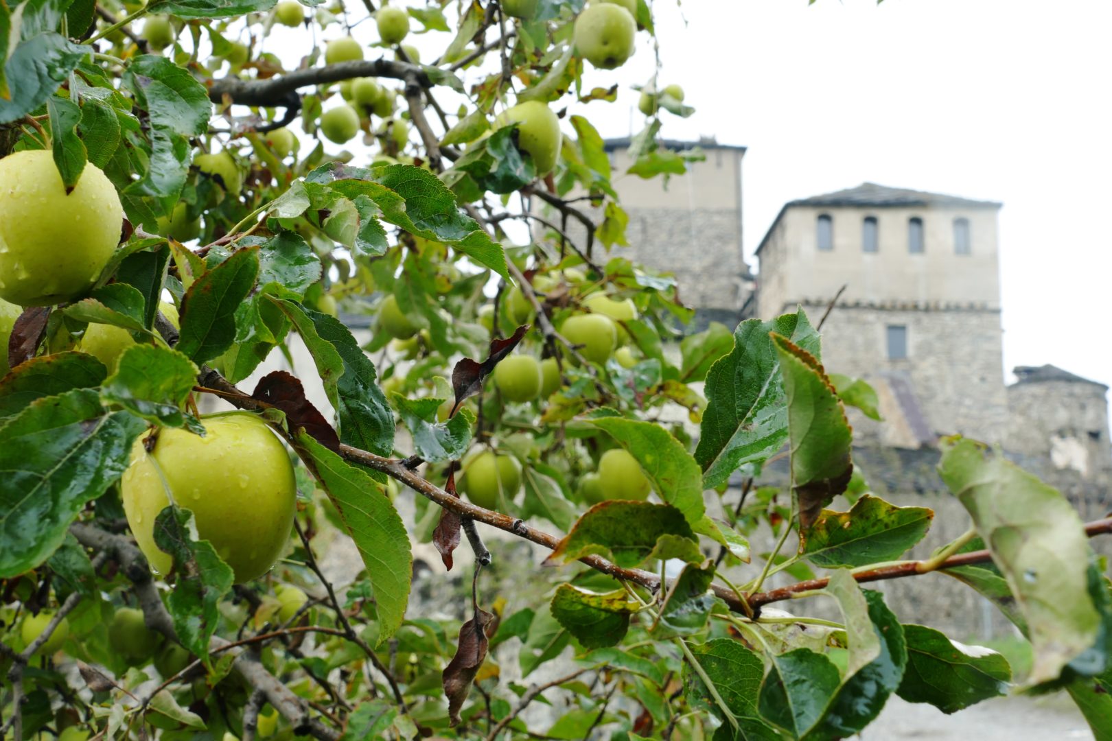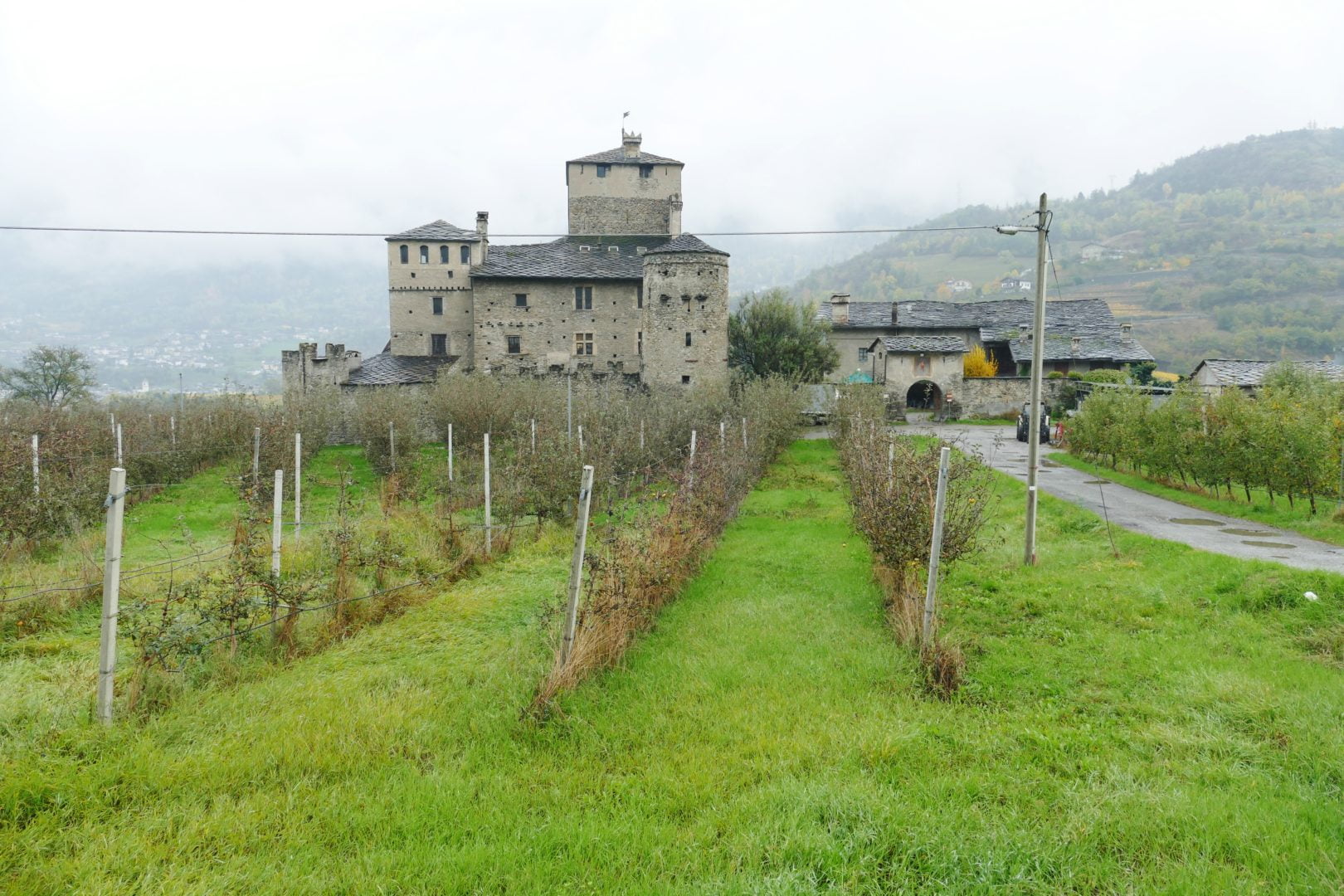 Incastonato tra i meleti, il Castello di Sarriod de la Tour appare come sospeso tra un Medioevo tormentato e un primo timido Rinascimento.