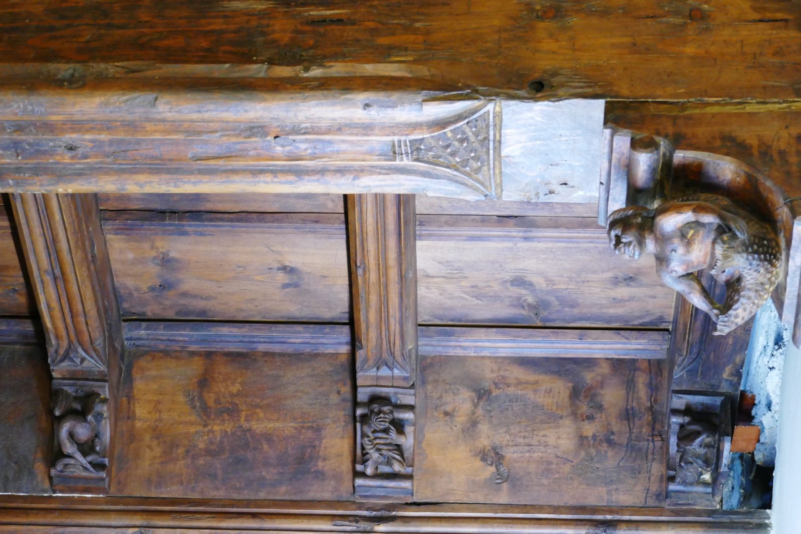 Si tratta di un particolarissimo salone d’onore adornato da 171 mensole lignee che decorano il soffitto: esseri mostruosi metà uomini e metà animali, sirene, diavoli, volti umani deformi rievocano il mondo fantastico dei bestiari medievali.