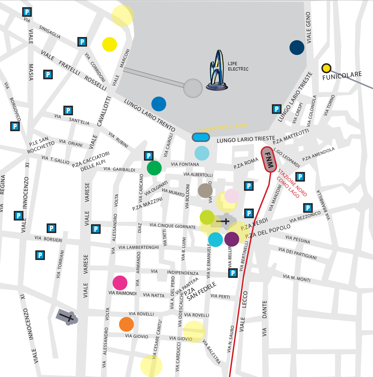 Proiezioni luminose e diverse installazioni artistiche coinvolgono piazze e monumenti storici dislocati nel centro di Como