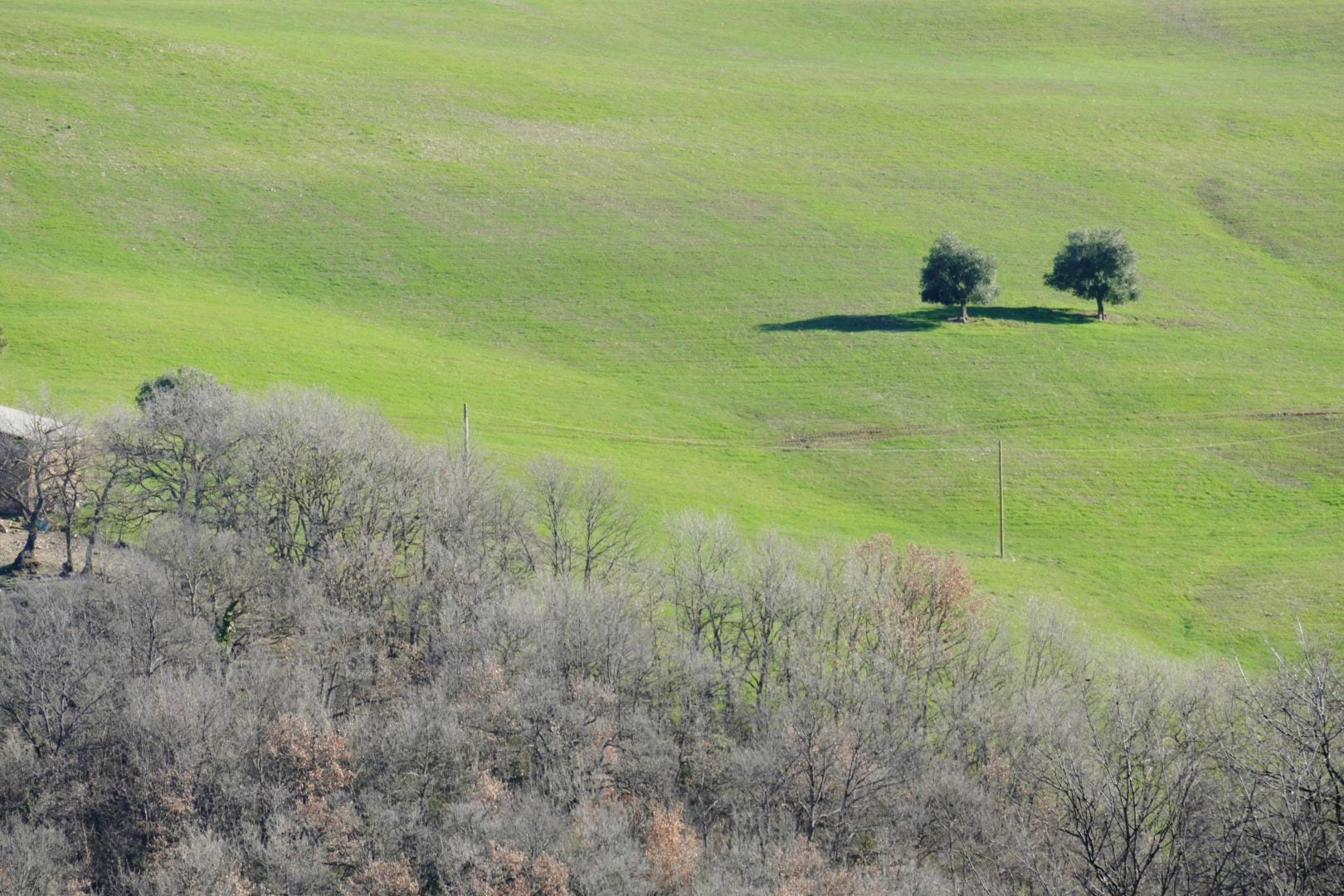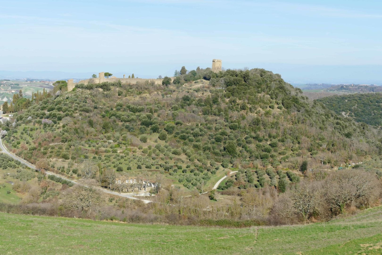 Da qui in nemmeno cinque minuti a piedi si raggiunge la cima della collina, ammirando anche il primo boschetto di cipressi.